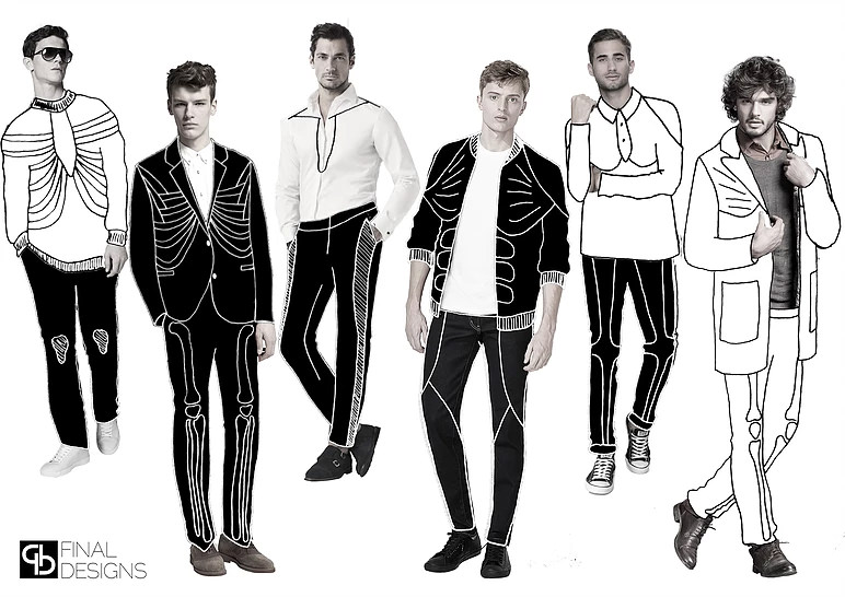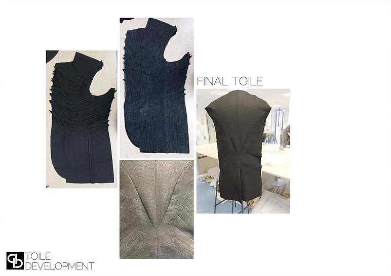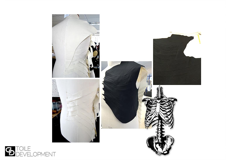 Anatomy was a short, toiling project at the end of my second year. I researched the human anatomy and used the shapes created by bones and muscles to inform my designs, manipulating shapes and seam lines.