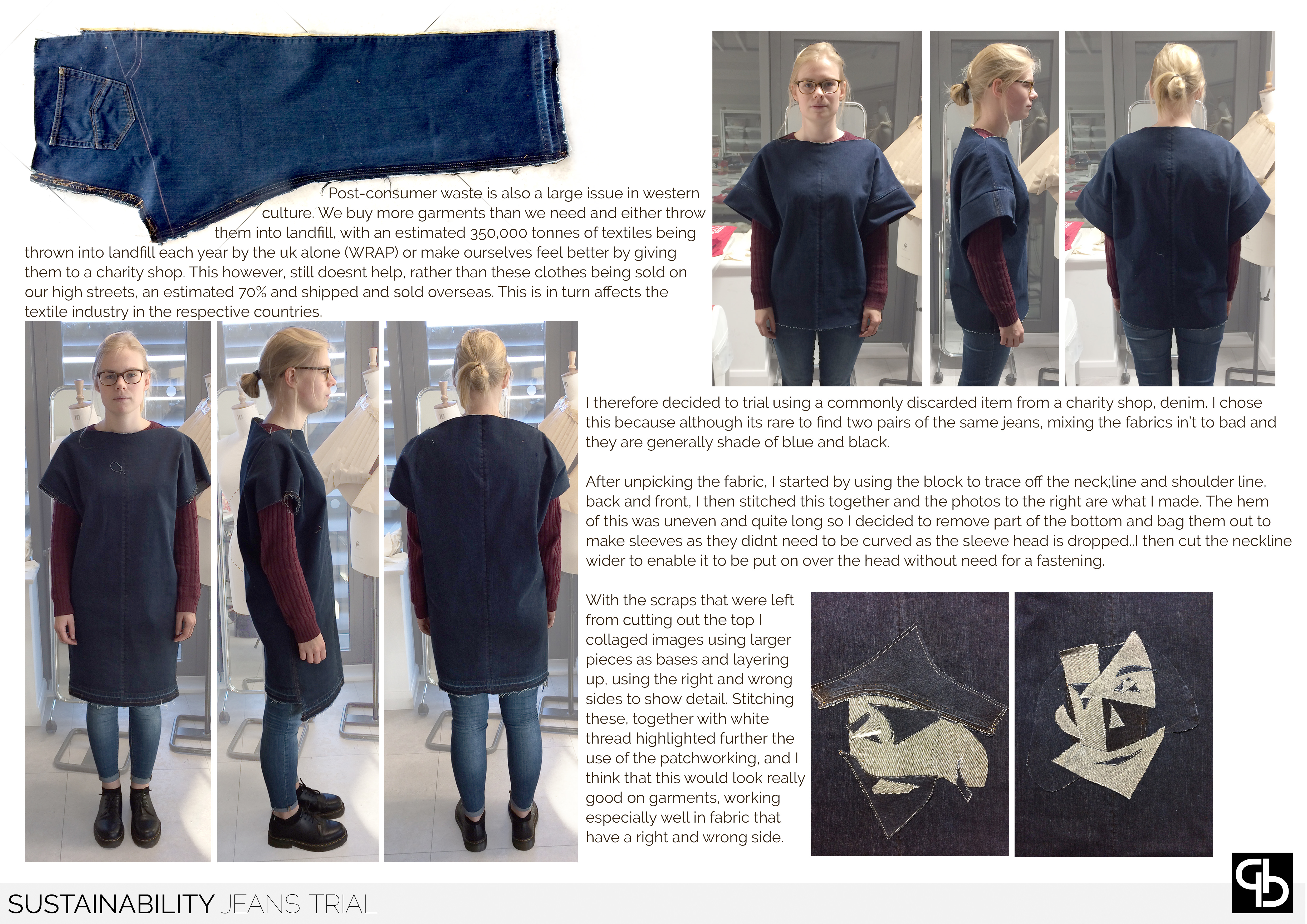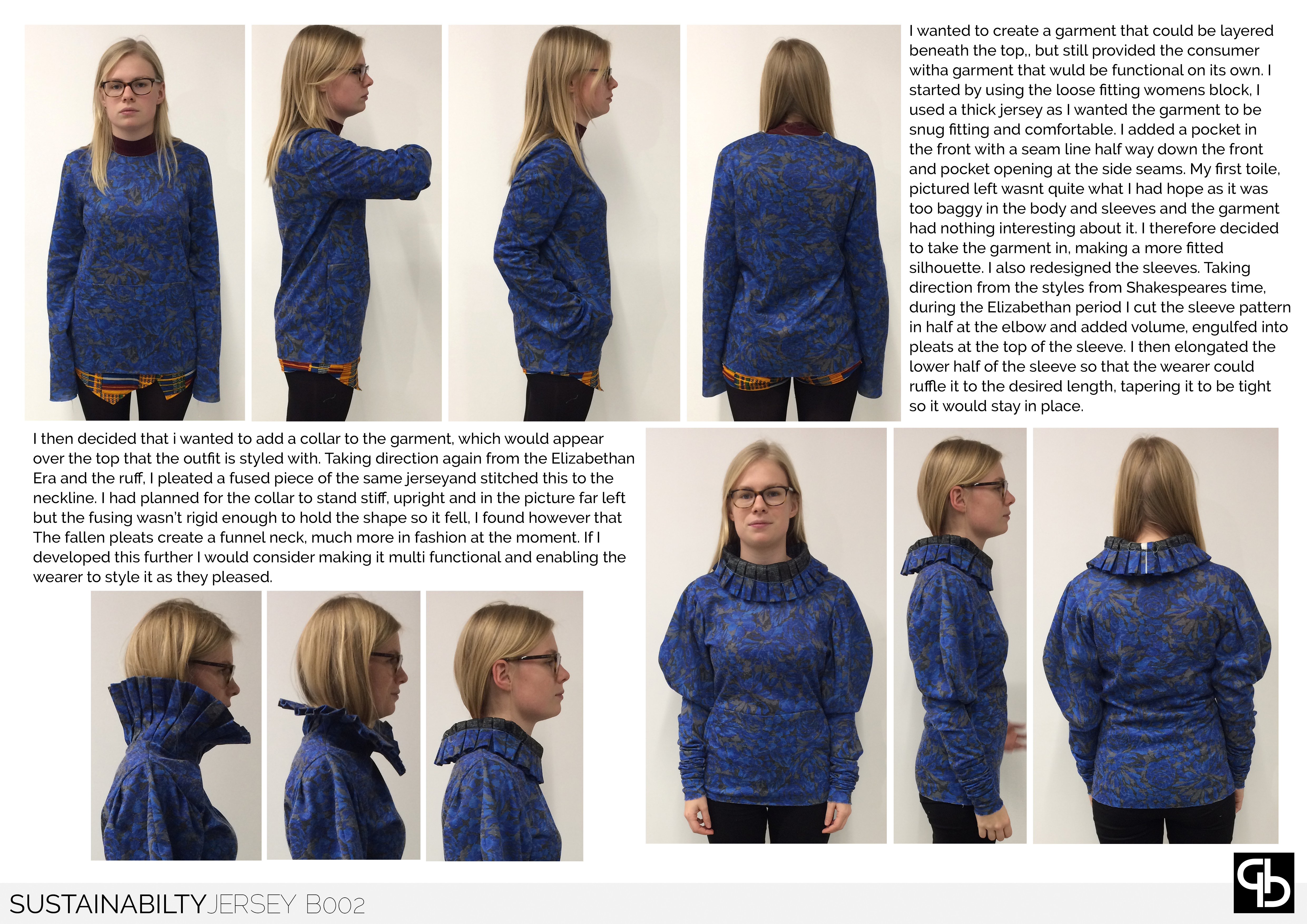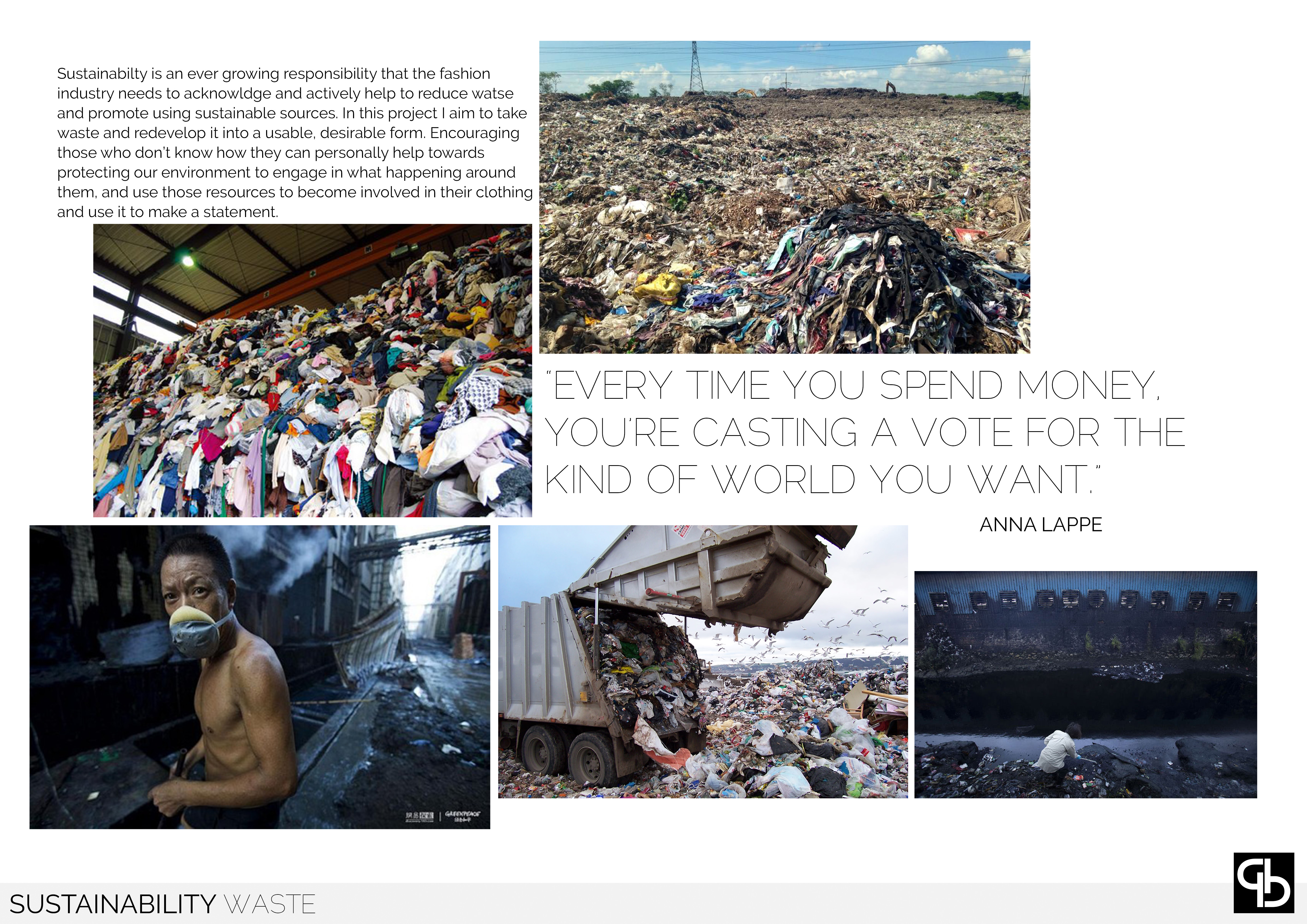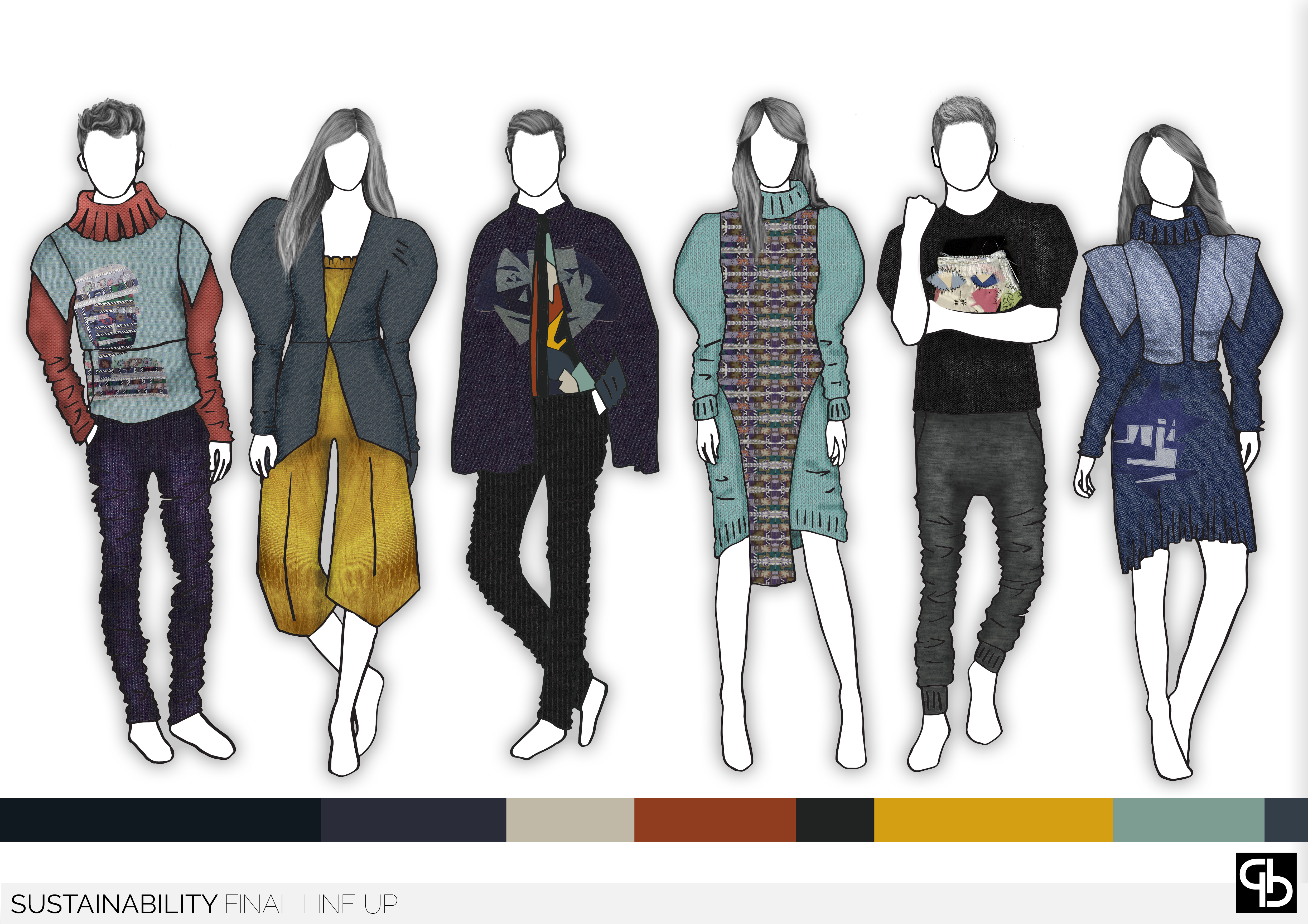 Sustainability develops using what is considered to be waste and using patchworking to reinvent it into a statement, using sharp, abstract imagery and quotes from Shakespeare's plays that resonated with current events. The asthetic of this range is derived from styles of the Elizabethan Era, shaken with a modern twist.